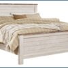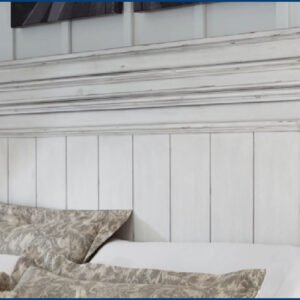 Kanwyn’s contemporary yet vintage style makes it suitable for different interior decors. It has a lovely distressed white-washed finish and is crafted with solid wood, veneers, and engineered wood. It also has a storage bench footboard for additional functionality.