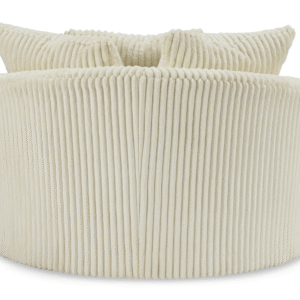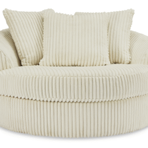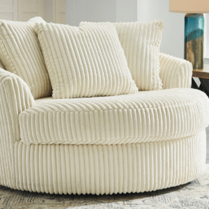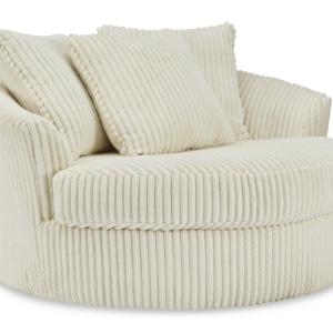 Crafted with meticulous attention to detail, the Lindyn chair boasts an irresistibly plush cord upholstery that immediately catches the eye. The oversized swivel accent chair is a testament to on-trend aesthetics, providing a luxurious focal point for any room. The remarkable ivory hue of the fabric adds an air of elegance, effortlessly harmonizing with modern color palettes.