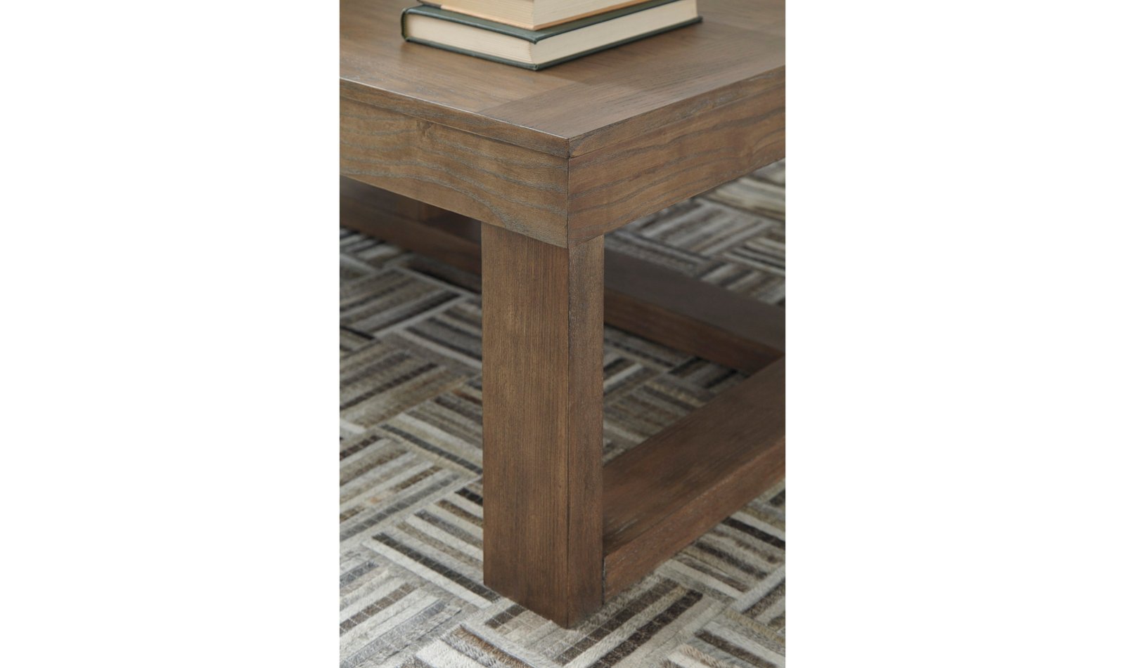 Crafted from engineered board and ash veneers, the Cariton cocktail table has a beautiful textured gray-brown finish enriched with intricate white undertones, resulting in a gorgeous plank-effect tabletop. Due to its modern design, this table can complement many interior styles.