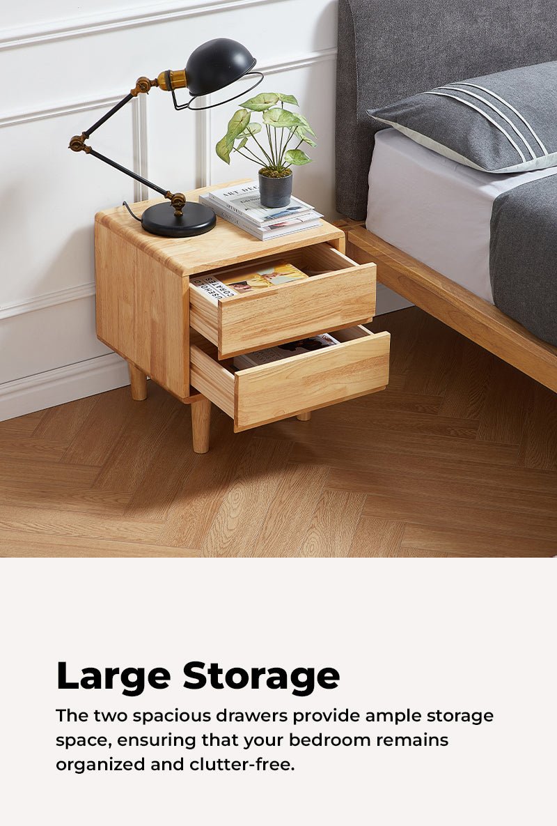 Gullichsen 2-Drawer Wood Nightstand is the perfect addition to any bedroom. Crafted from high-quality wood materials, this nightstand is not only durable and long-lasting but also stylish and elegant. Our wood nightstand features a simple yet sophisticated design that complements any bedroom decor style. With a smooth finish and clean lines, it offers a sleek and modern look that enhances the ambiance of your room. The nightstand is designed to provide ample storage space with its spacious drawers, allowing you to store your essentials such as books, glasses, or phone chargers conveniently within reach. The top surface is also ideal for placing lamps, alarm clocks, or decorative items.