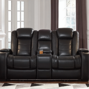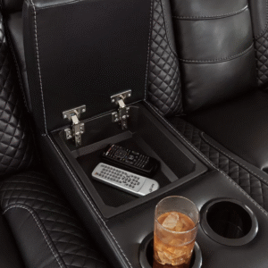 • Drop down table with 2 cup holders and a handy docking station for charging electronics.