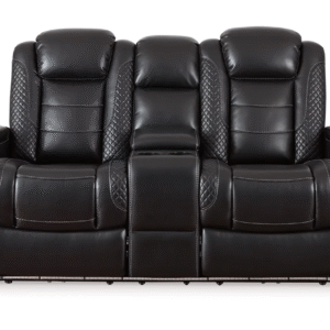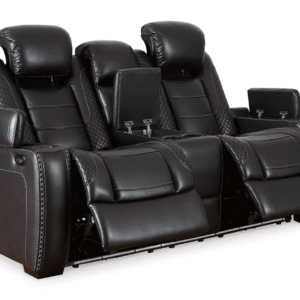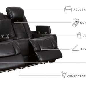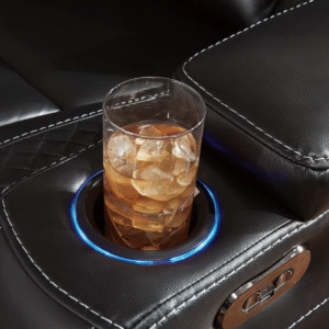 • View™ adjustable headrest and usb plug-in led lighted cup holders, flip up padded armrests with hidden storage.