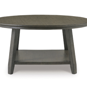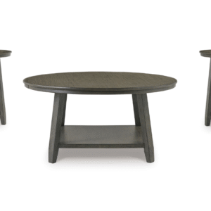 Round out your seating area with this coffee table set in a contemporary two-tiered round design. Clean-lined design is simple, yet striking—while its antiqued gray washed finish over Acacia wood and veneer is anything but ordinary.