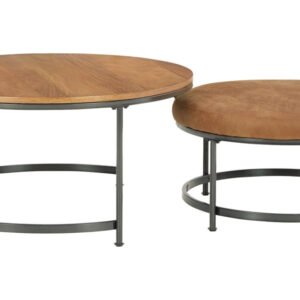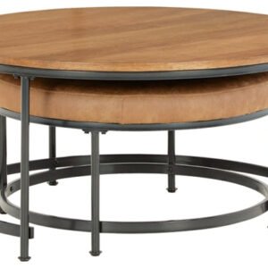 Make your nest that much more luxurious with this coffee table and ottoman nesting set. the table’s light brown mango veneer pairs beautifully with the caramel color faux leather ottoman for a rustically refined look that feels right at home.
