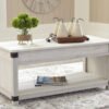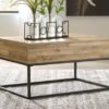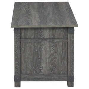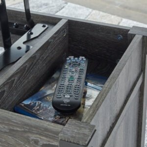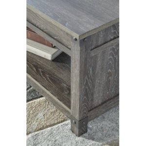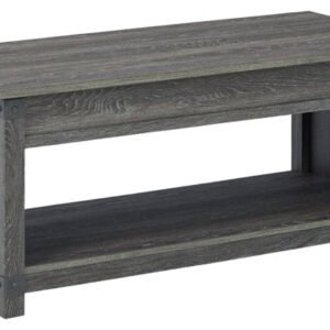 Raise the bar on modern farmhouse design with this lift top coffee table. Sporting a grayish brown replicated wood grain effect, its handy spring-loaded mechanism brings the tabletop closer to you. This versatile table makes it easier than ever to eat, work or play from the comfort of your sofa.