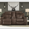 Modern Heritage Owner’s Box 2-Seater Leather Recliner Loveseat in Brown