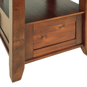 The distressed wooden finish exudes a rustic charm and gives it a traditional vibe. The storage niche in the center of the table is not only functional but also evokes a countryside feel. It can be easily used to store your crockery or other essentials.