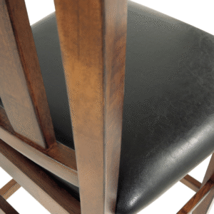 This timeless piece of furniture comes with a set of chairs with faux leather upholstery and a rakeback design, exaggerating that old-world charm. The fixed shelf adds a functional twist to the table.