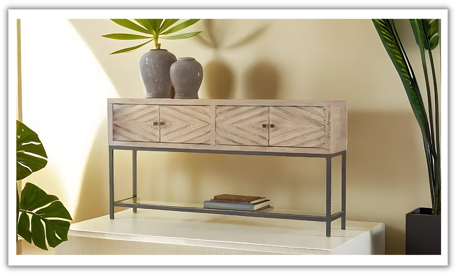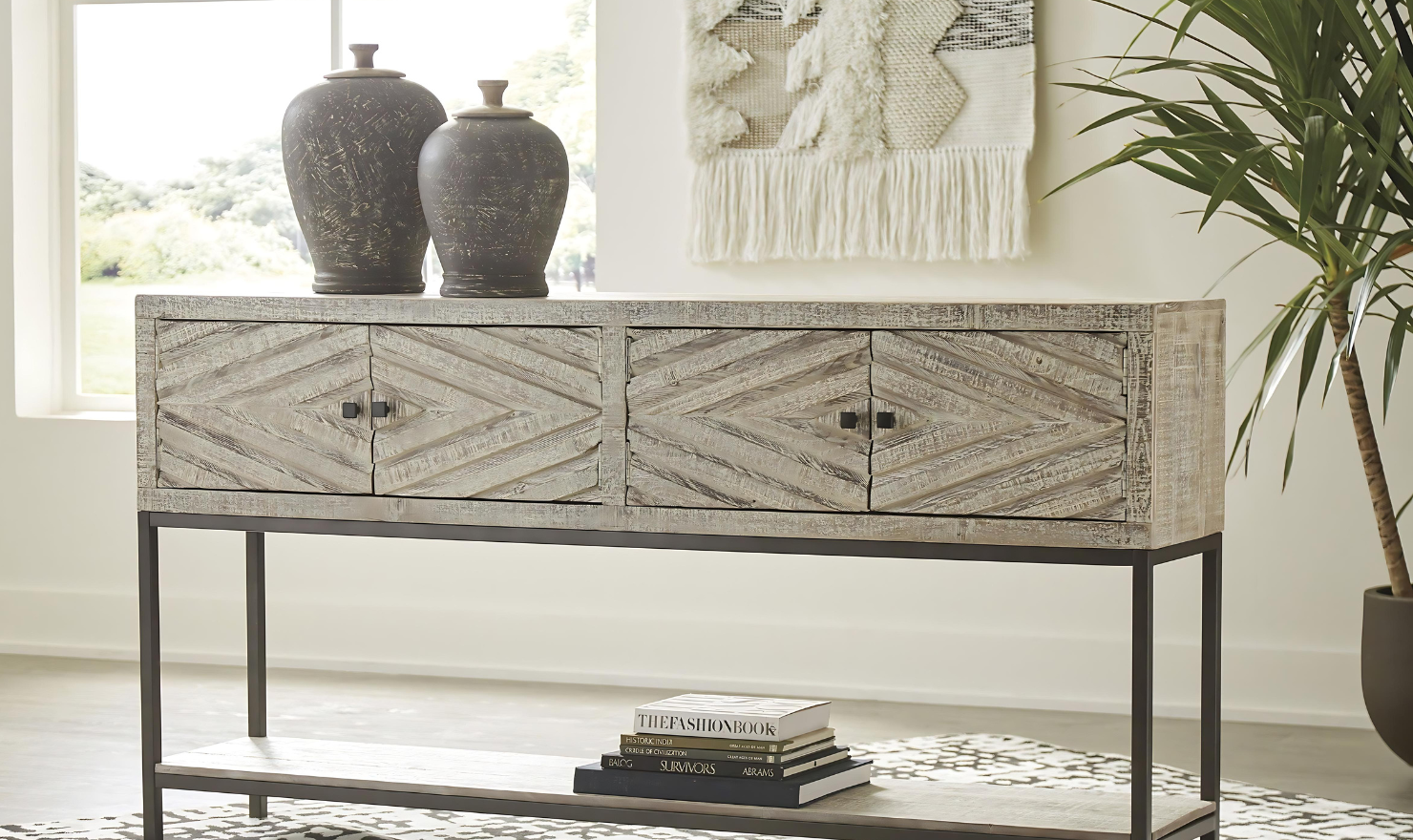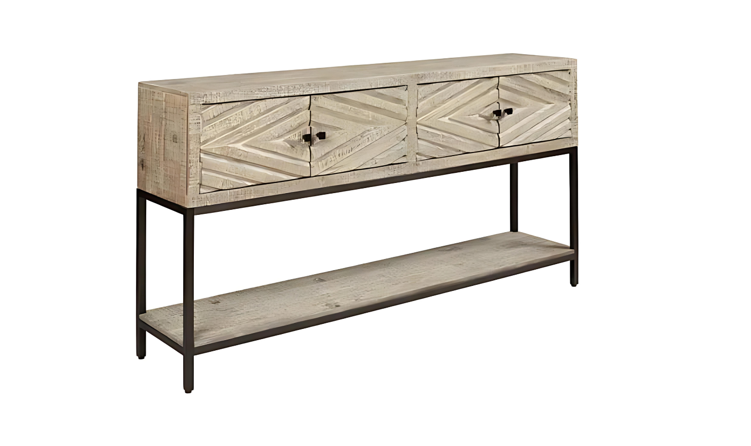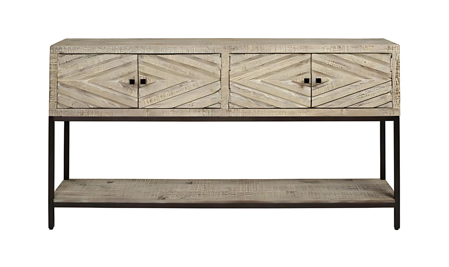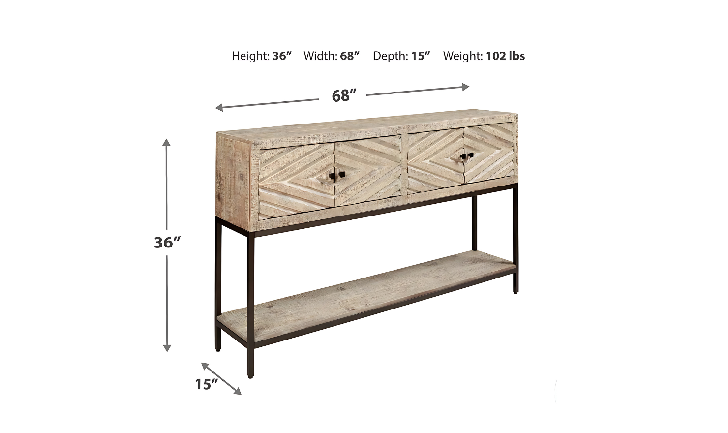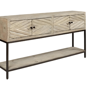 Modern Heritage Roanley 4-Door Sofa Table in Distressed White Finish