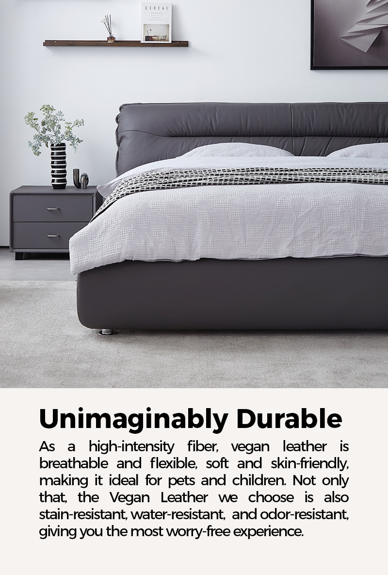 Looking for the perfect bed to help you get a great night’s sleep? Look no further than our Salo Serenity Bed! It is crafted with the utmost care and attention to detail, using the highest-quality vegan leather to ensure durability and comfort. Inspired by Italian designers, this bed is luxurious and elegance. The soft and comfortable headboard provides extra support. The sturdy pine wood frame ensures durability and longevity. Upgrade your sleep experience today with the Serenity Bed and enjoy a peaceful and rejuvenating night’s sleep, every night.