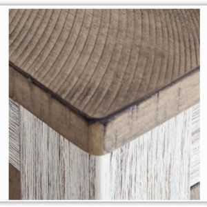 - Distressed grayish-white finish